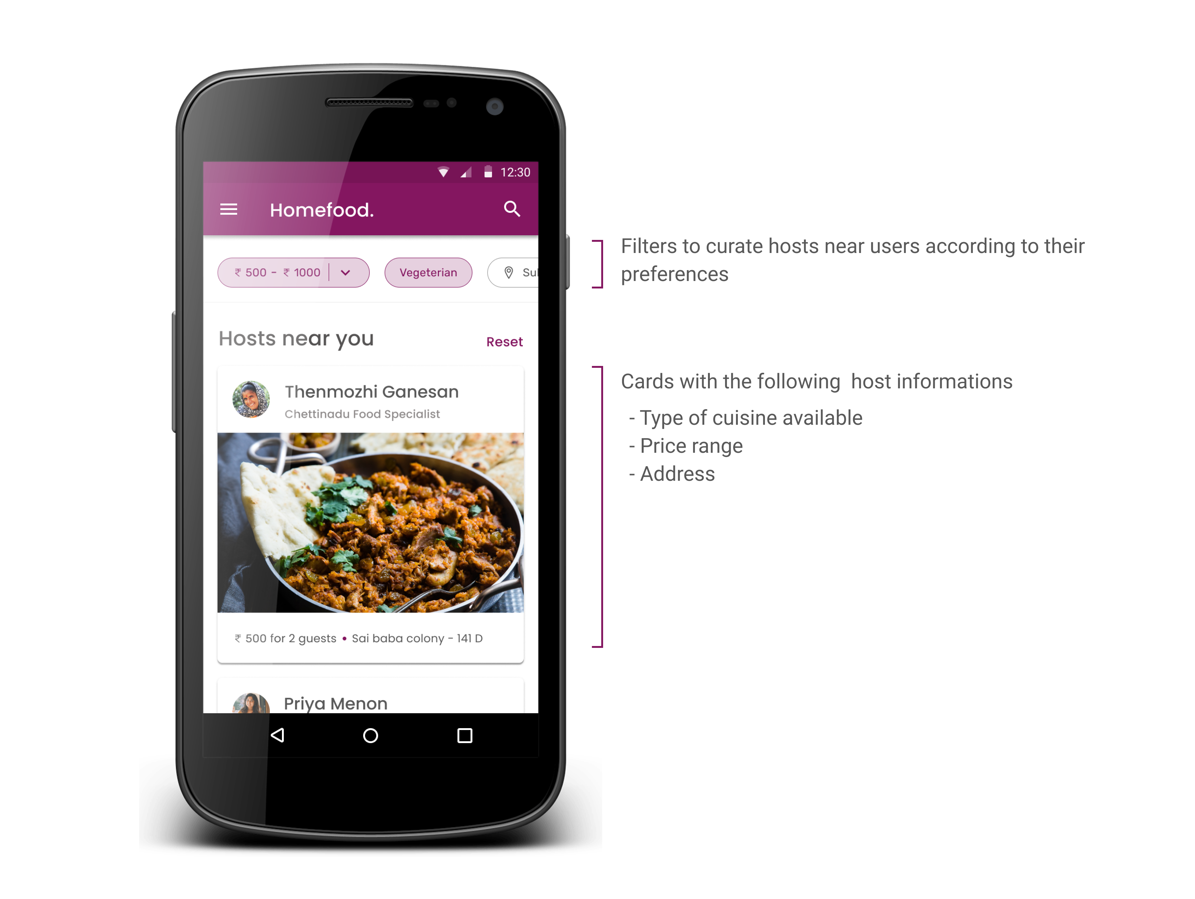 Homefood is designed to create a mutually beneficial ecosystem between students living away from home and homemakers living in the same location. It gives students easy access to homemade food and a homelike environment while creating employment opportunities for homemakers.
